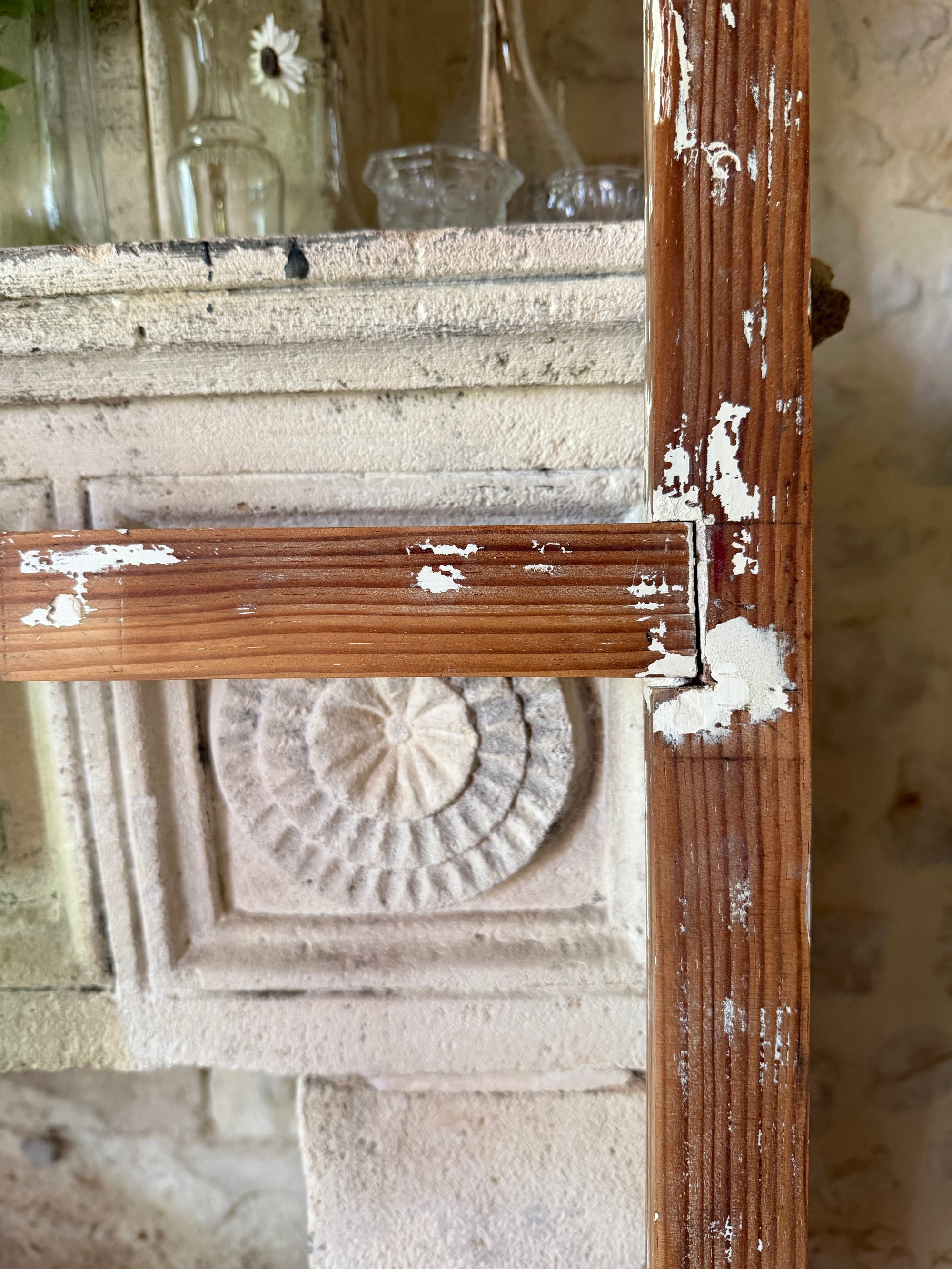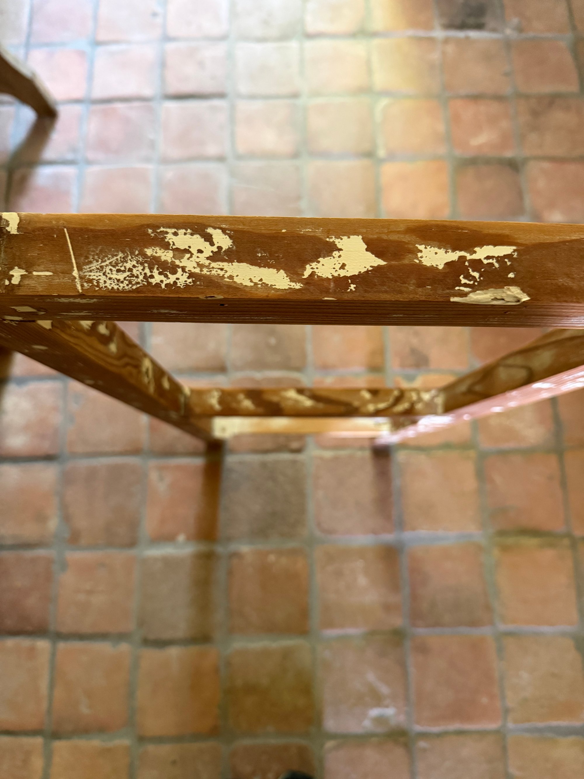 Échelle blanche patinée en bois, peinture d'origine.