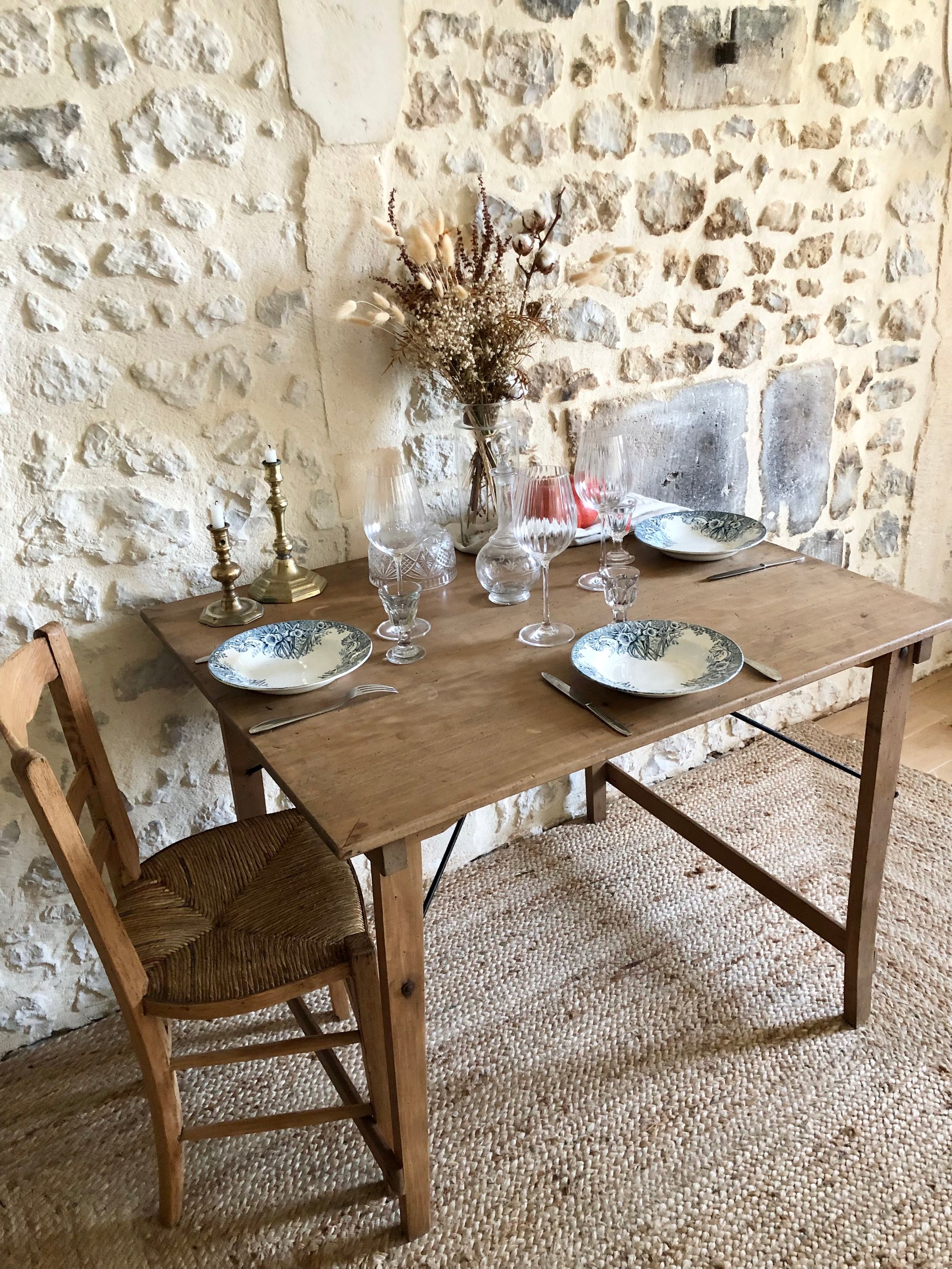 Entièrement rénovée, elle a été soigneusement nettoyée, traitée contre les parasites du bois, puis partiellement teintée avant d’être protégée par un vernis mat incolore.