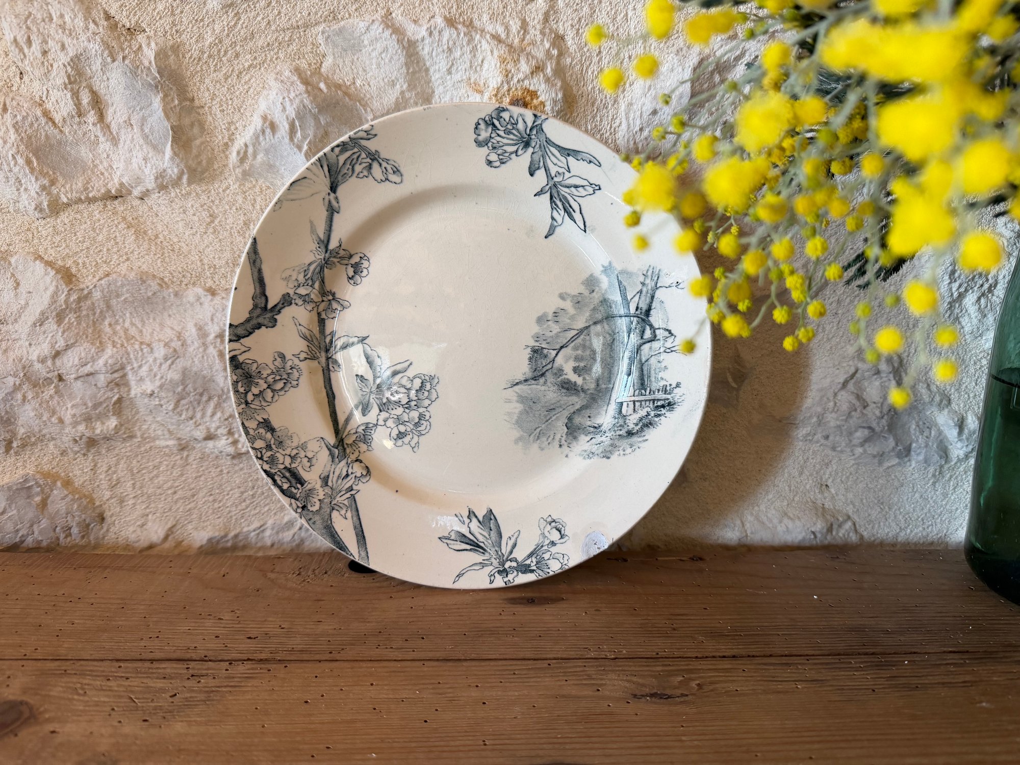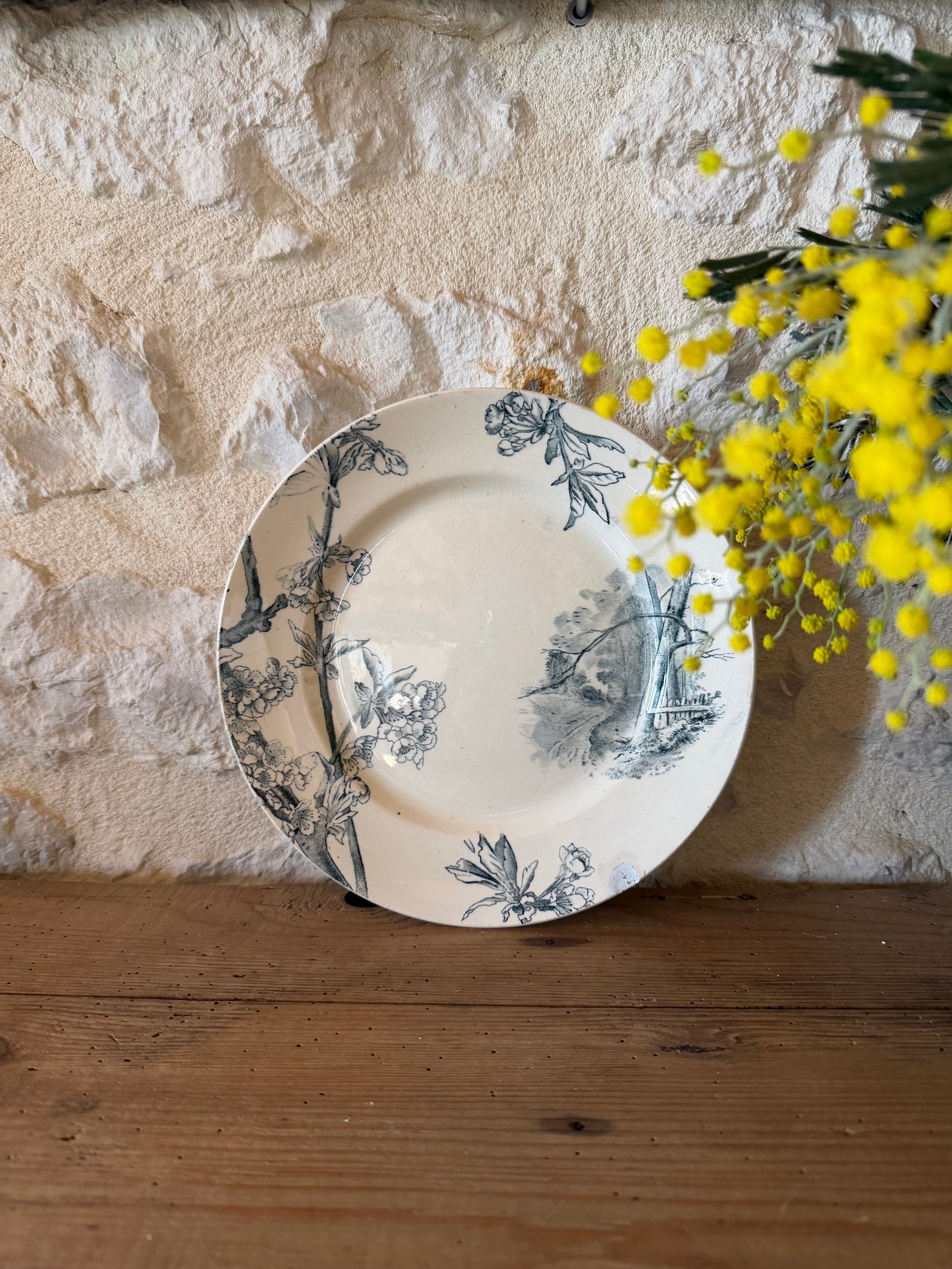 Jolie décor floral et paysage bleu-gris.