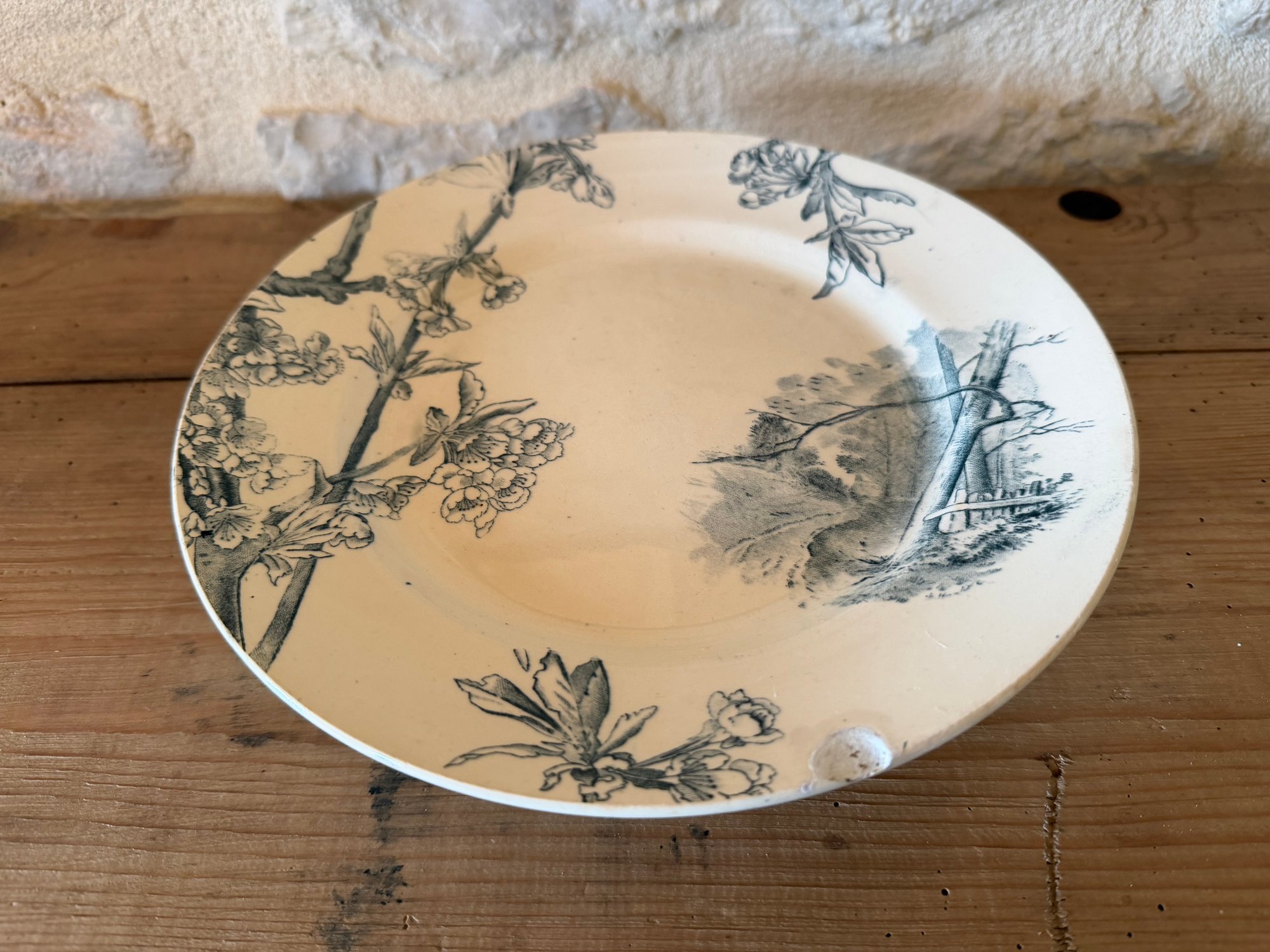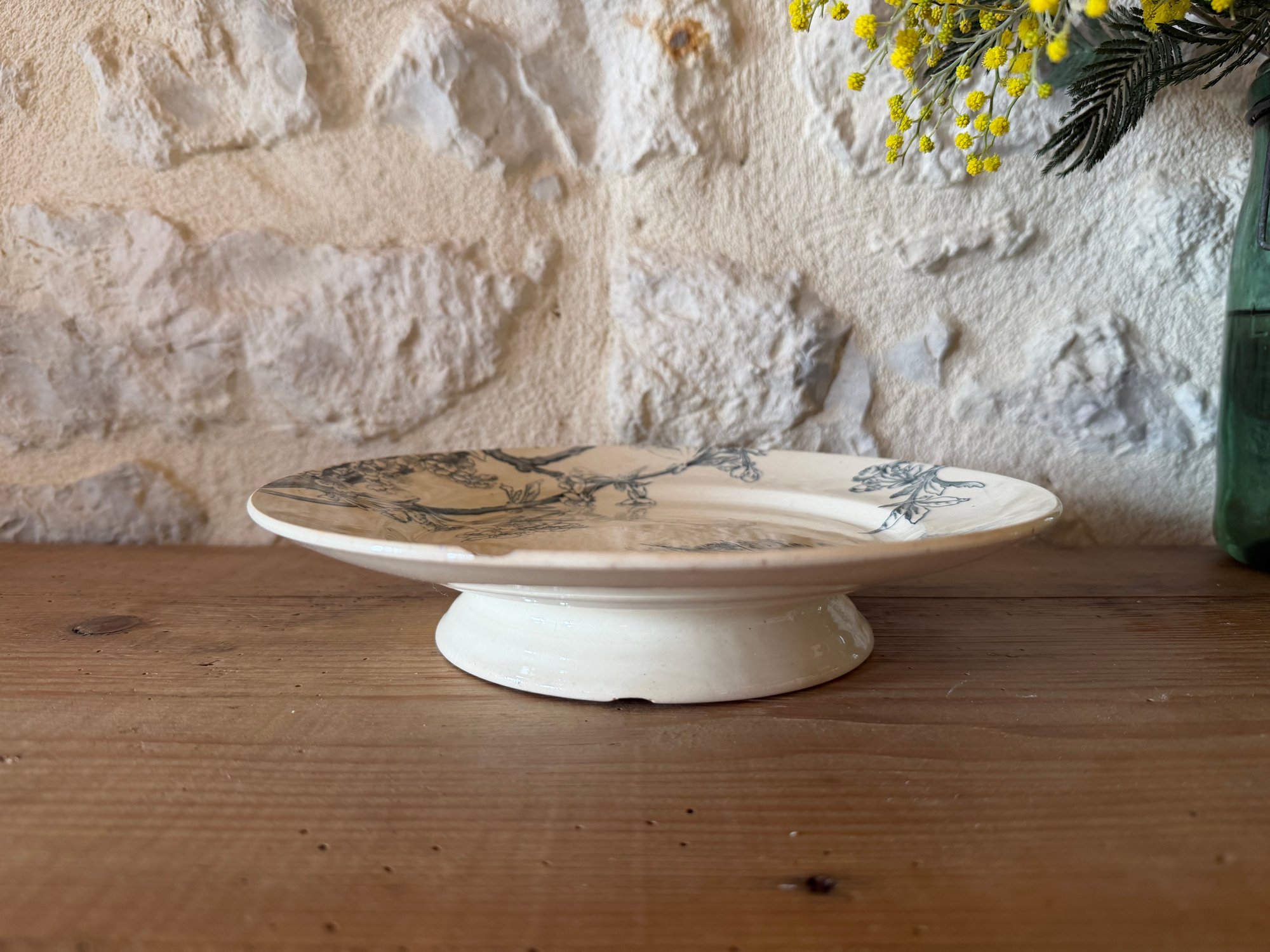 Assiette sur piédouche ancienne - Creil et Montereau, modèle Cerisier - Art de la table