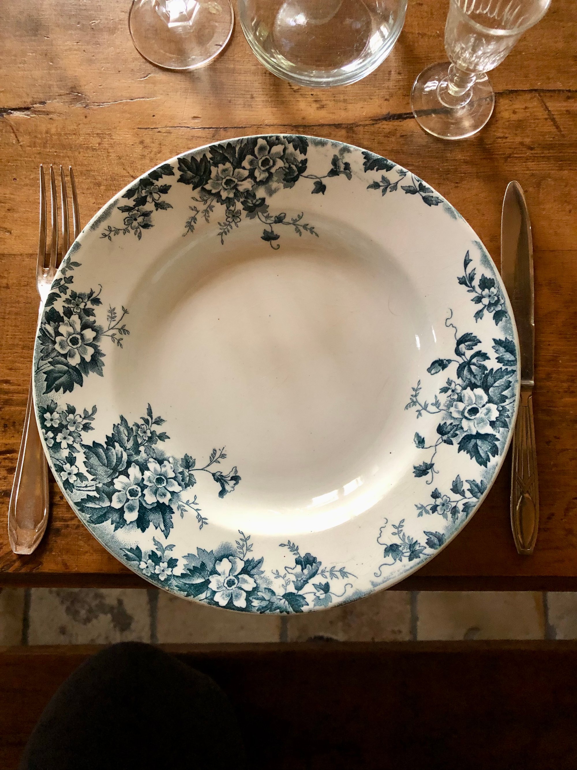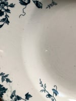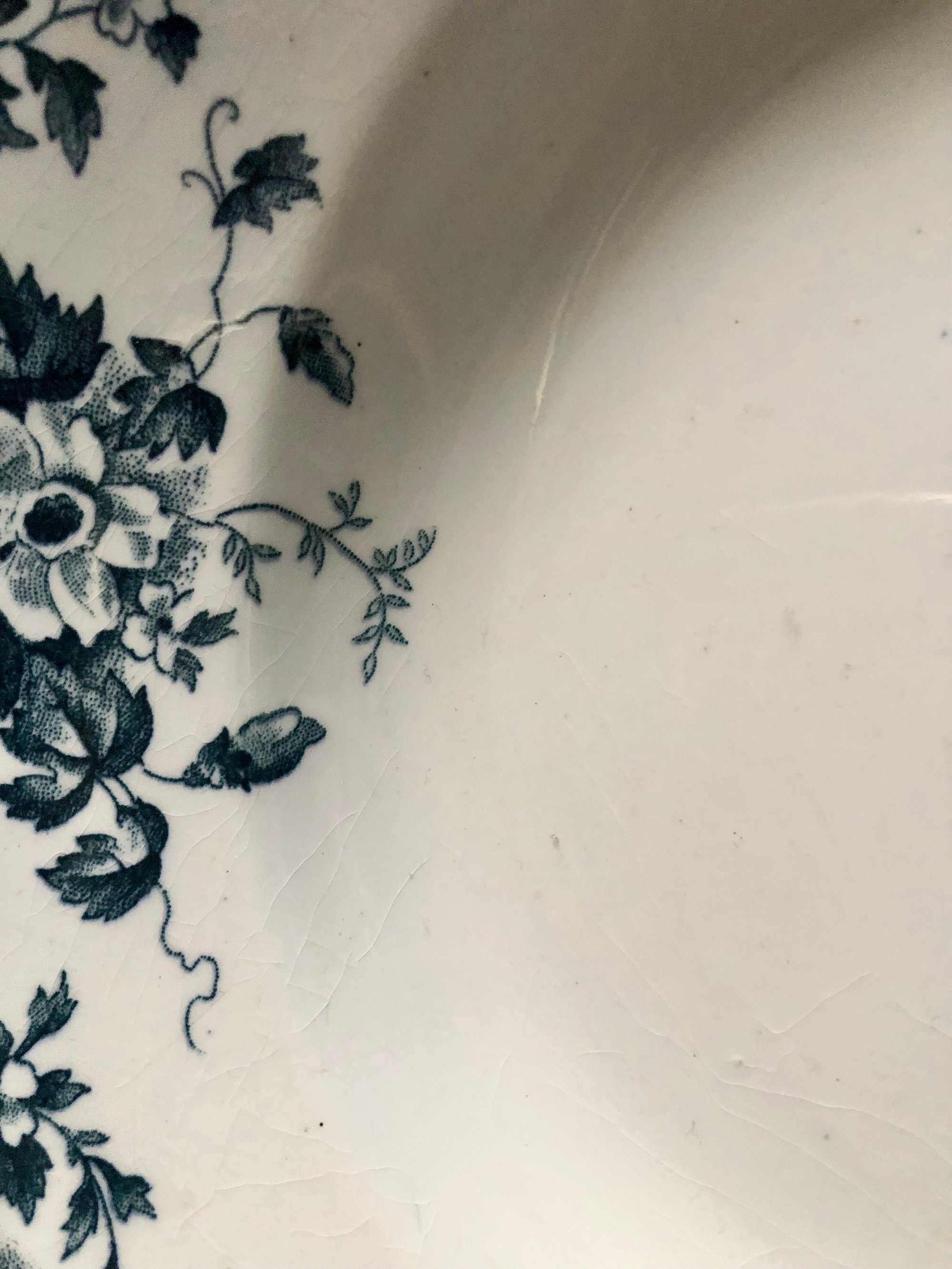 Cette assiette est ornée d’un beau motif floral bleu/vert, vibrant et délicat, mis en valeur par une patine naturelle qui raconte son histoire.