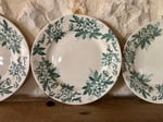Leur décor floral vert, délicatement posé sur le pourtour, semble murmurer le souvenir des tables d’autrefois, tandis que la patine chaleureuse raconte plus de 100 ans de vie et d'usages soigneusement préservés.