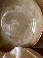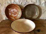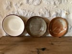 Suite de 3 belles assiettes creuses en grès, aux tonalités naturelles assorties.