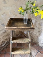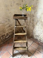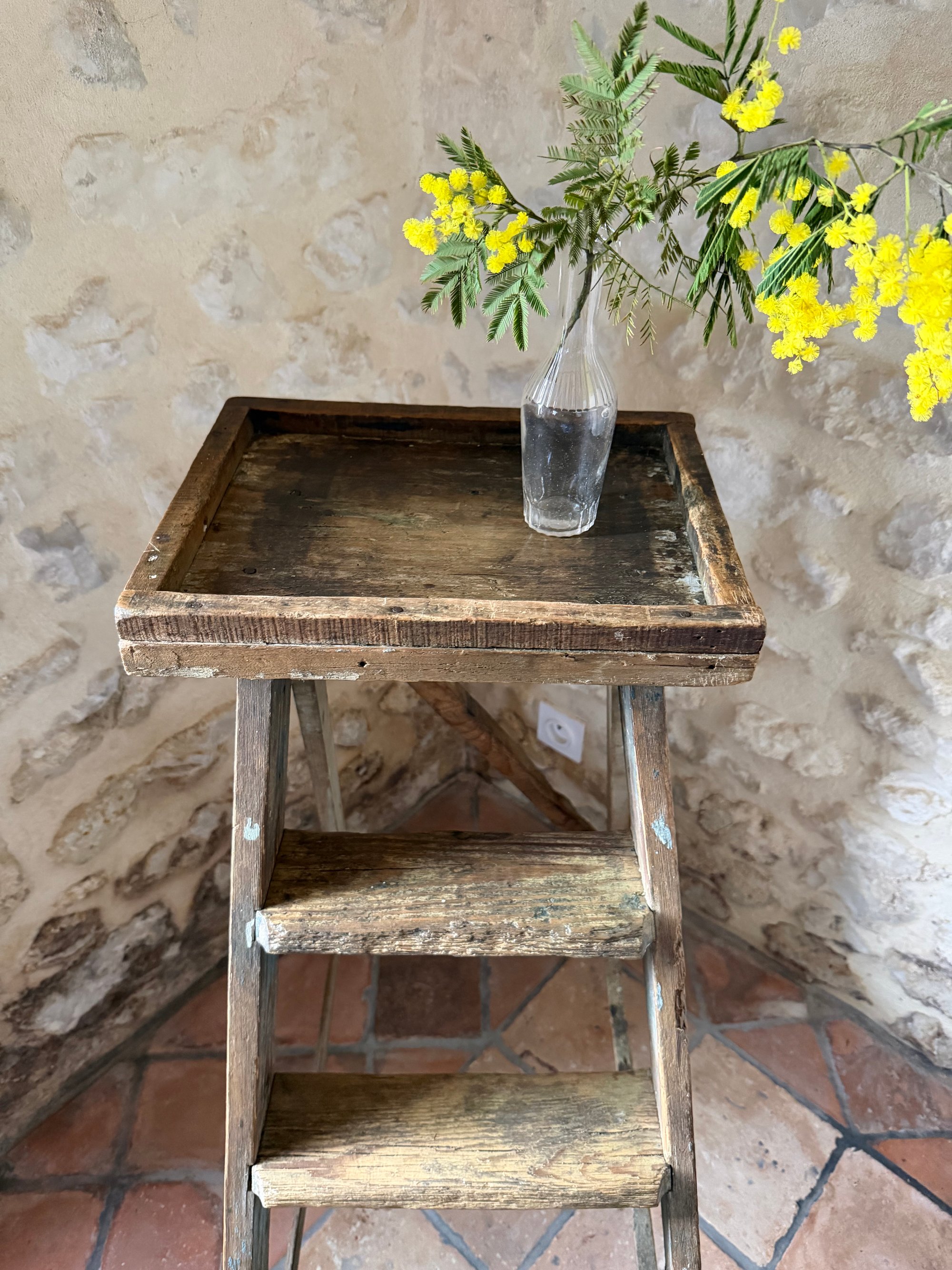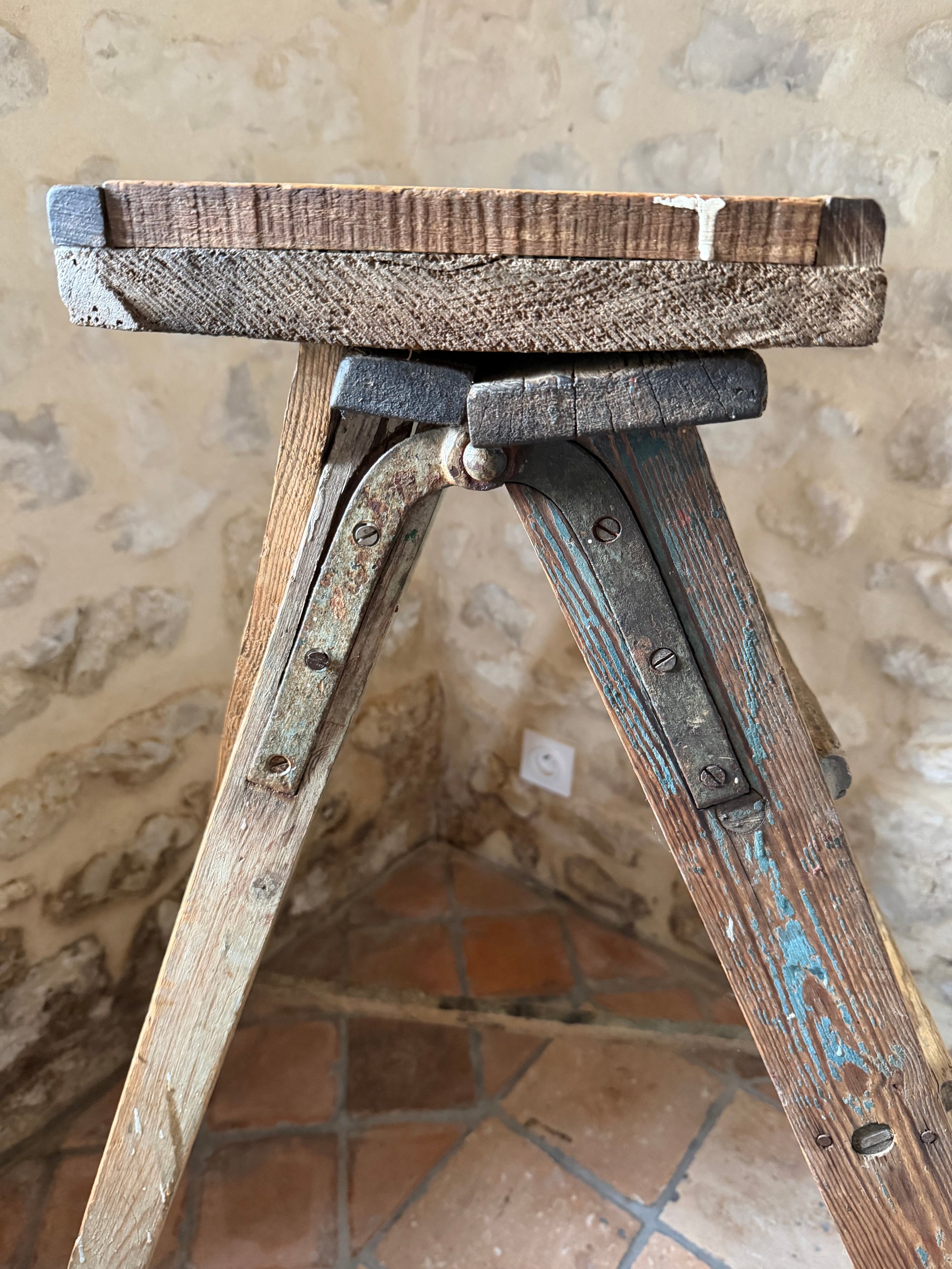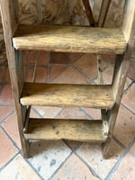 Authentique escabeau de peintre ancien en bois massif, au charme patiné par le temps.