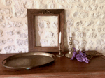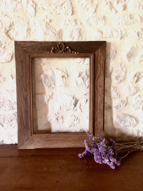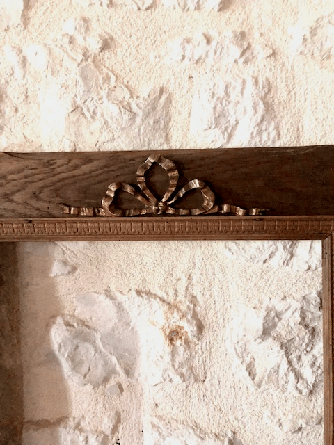 Charmant cadre en bois datant des années 1900, orné d’un nœud en métal et d’une fine frise sculptée, typique de l’élégance des objets décoratifs de la Belle Époque.