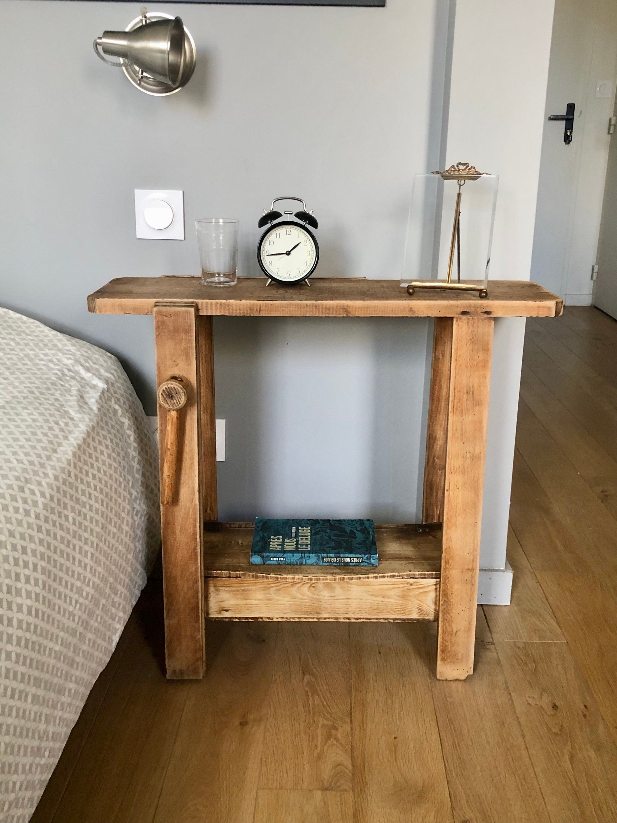 Chaque trace a été préservée et mise en valeur avec soin, pour laisser vivre toute l’âme de ce bois patiné.