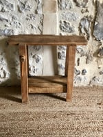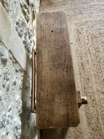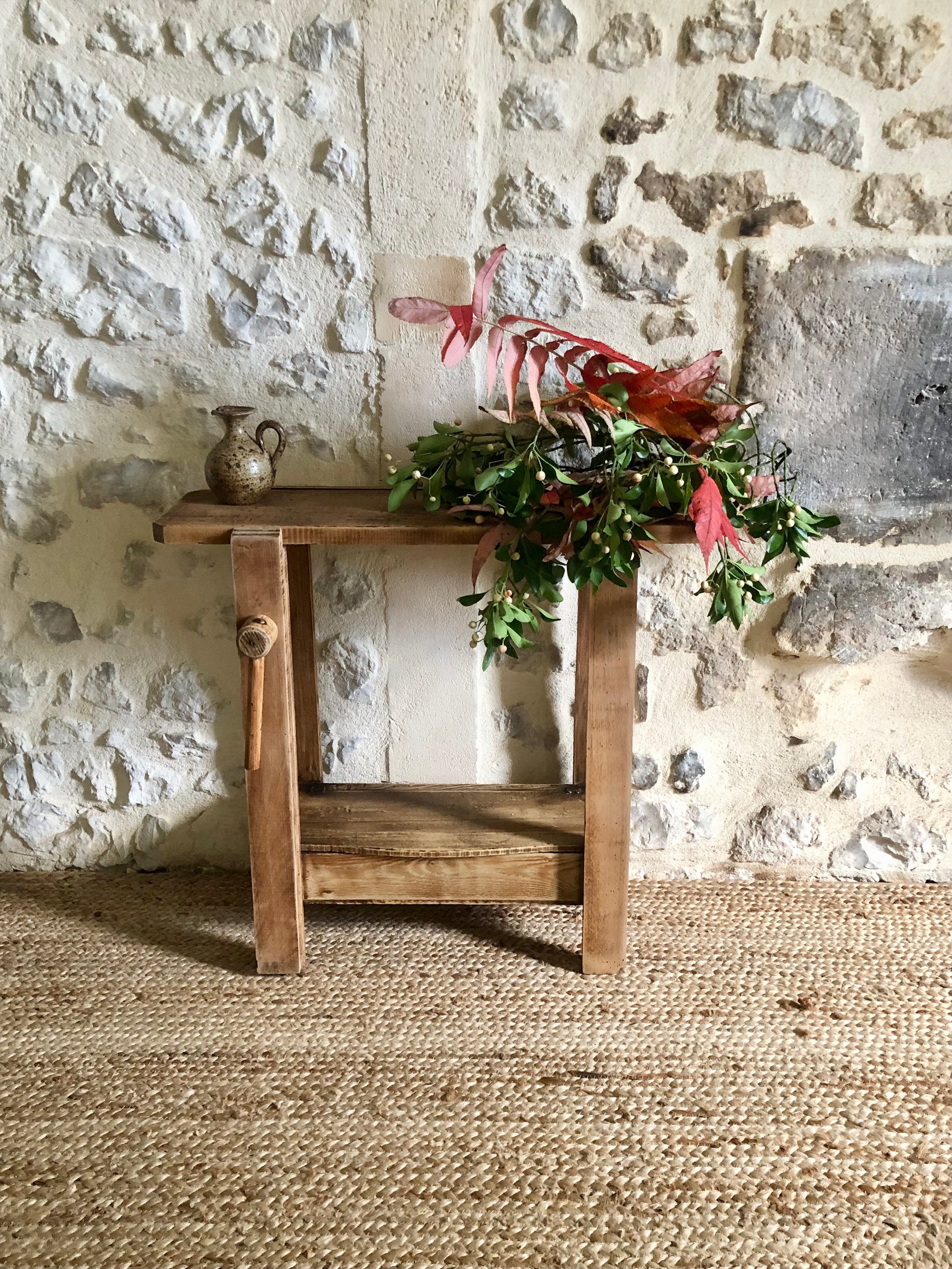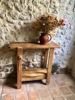 Ce petit établi en bois ancien dégage un charme irrésistible, façonné par les années. Ses marques du temps, ses aspérités et ses cicatrices racontent son histoire.
