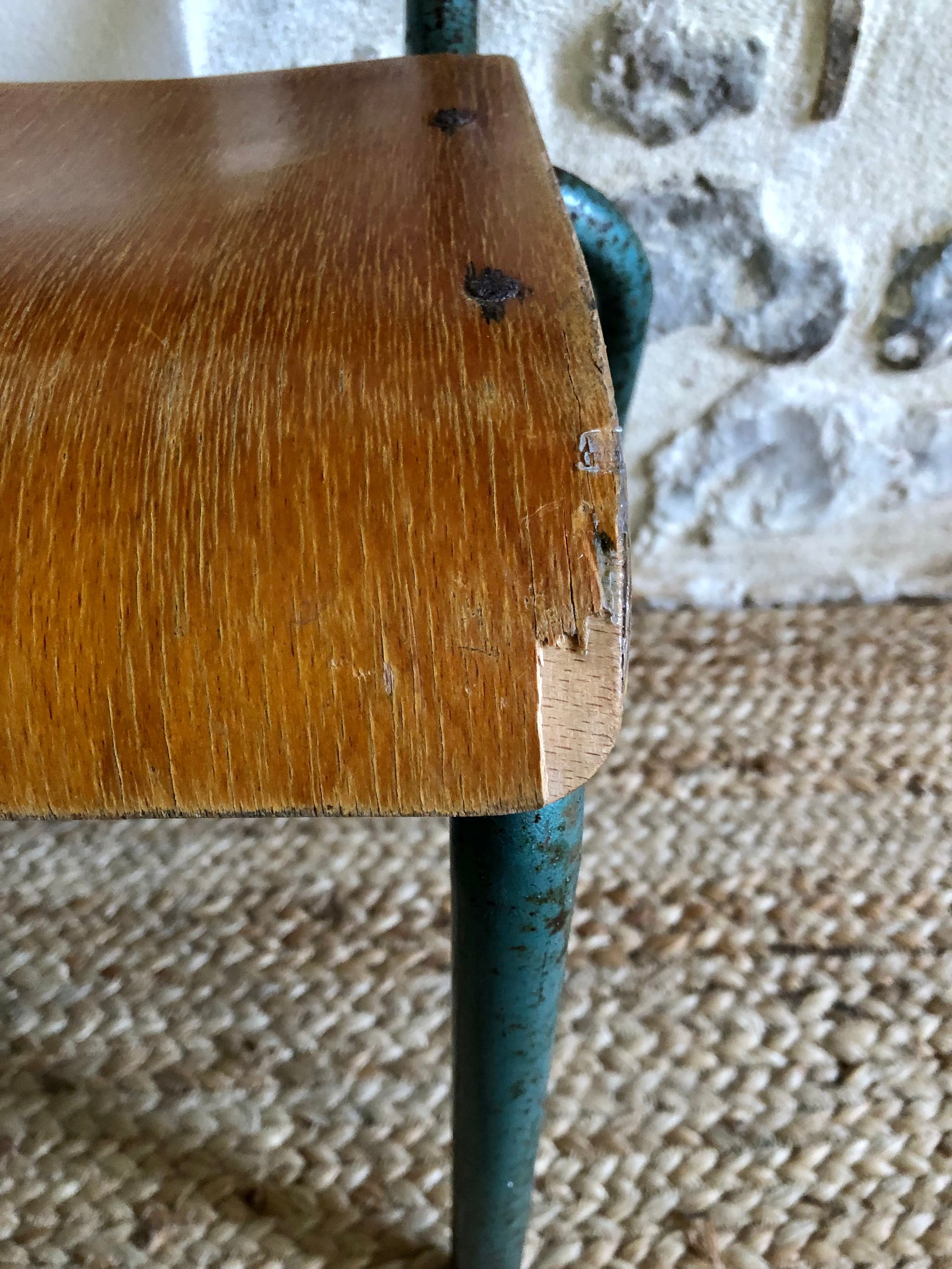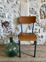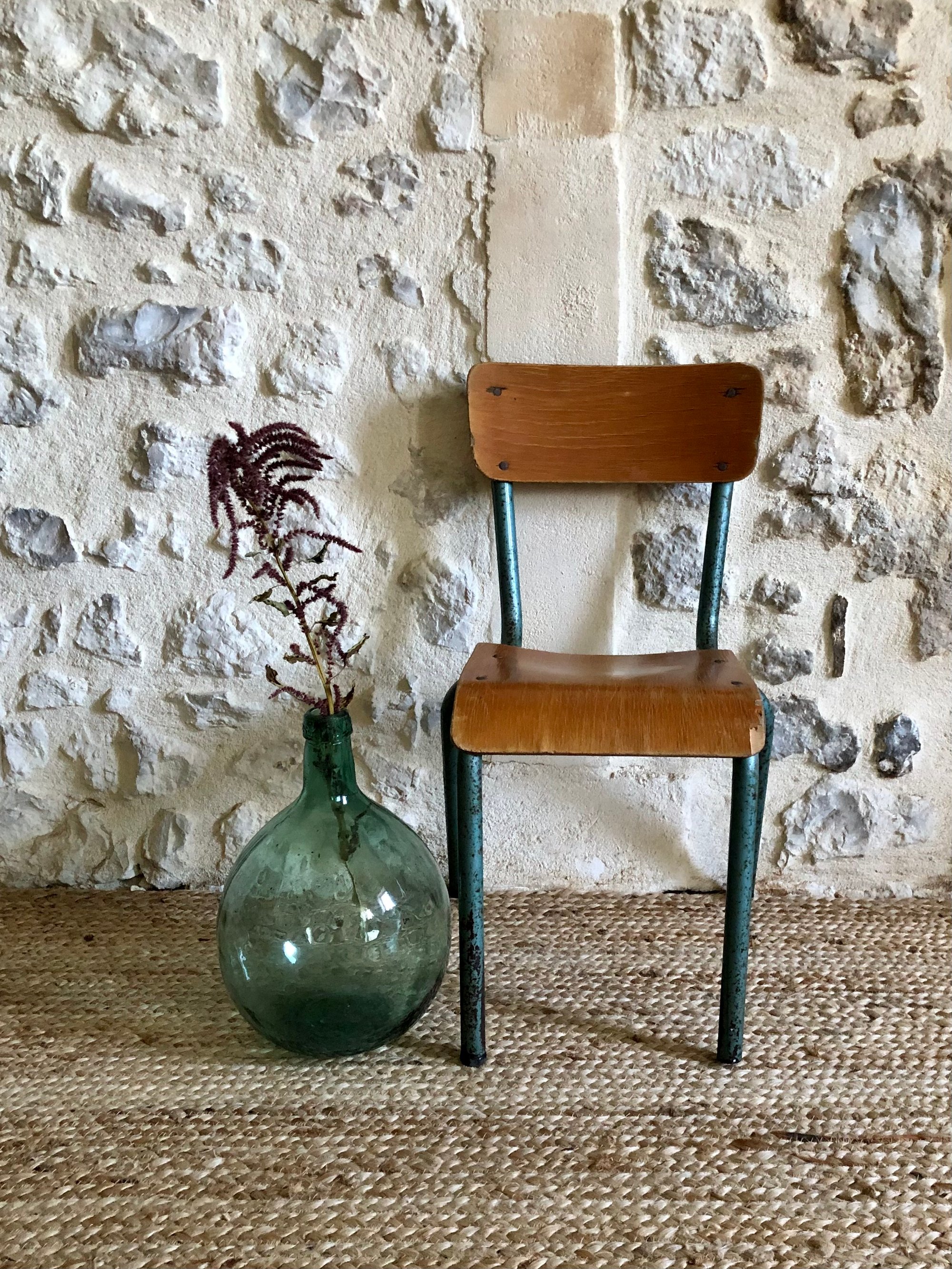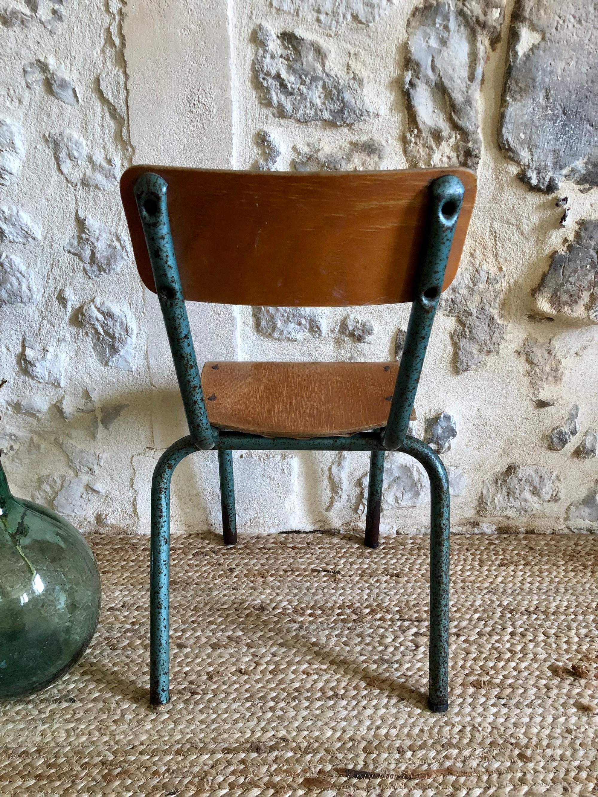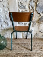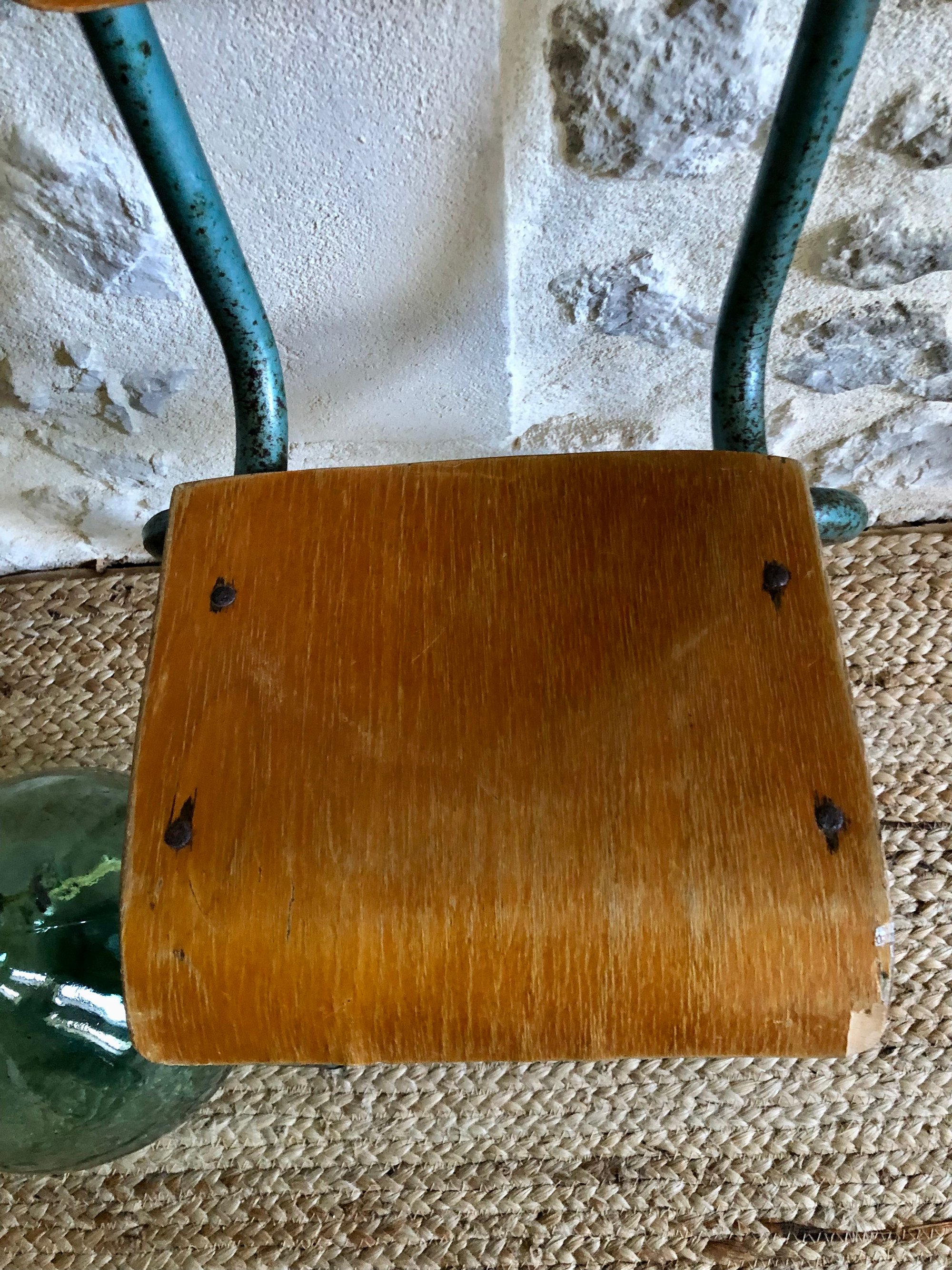 Petite chaise d’écolier vintage. Design de la chaise Mullca que l’on retrouvait dans les classes de maternelles durant de nombreuses années.