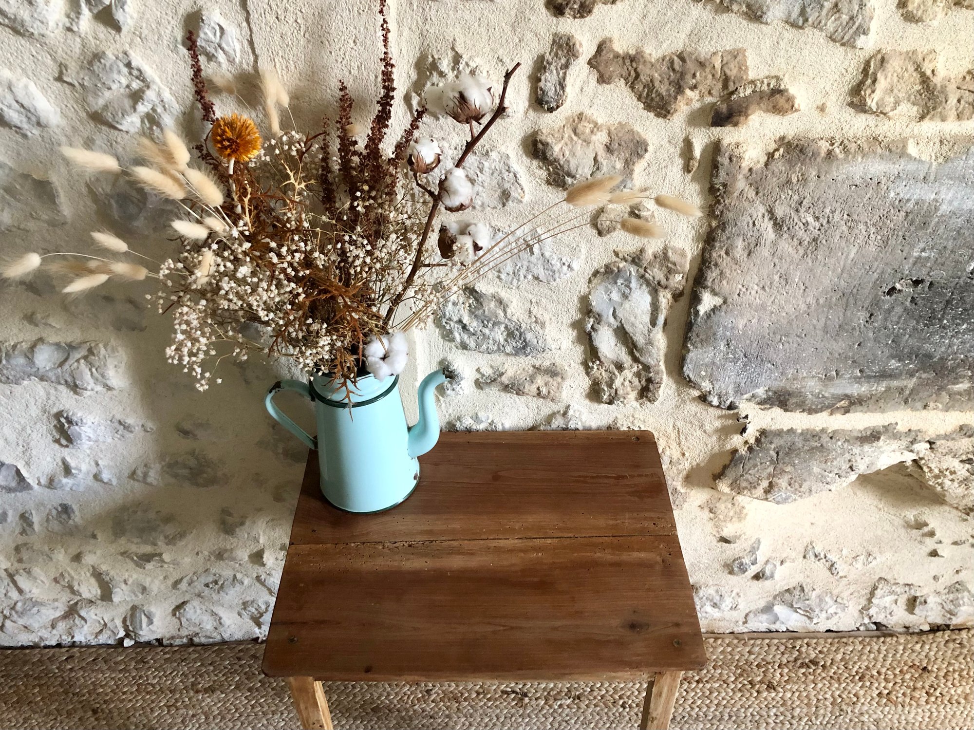 Cette mignonne petite table en bois ancienne, entièrement rénovée, porte en elle la poésie du temps passé.