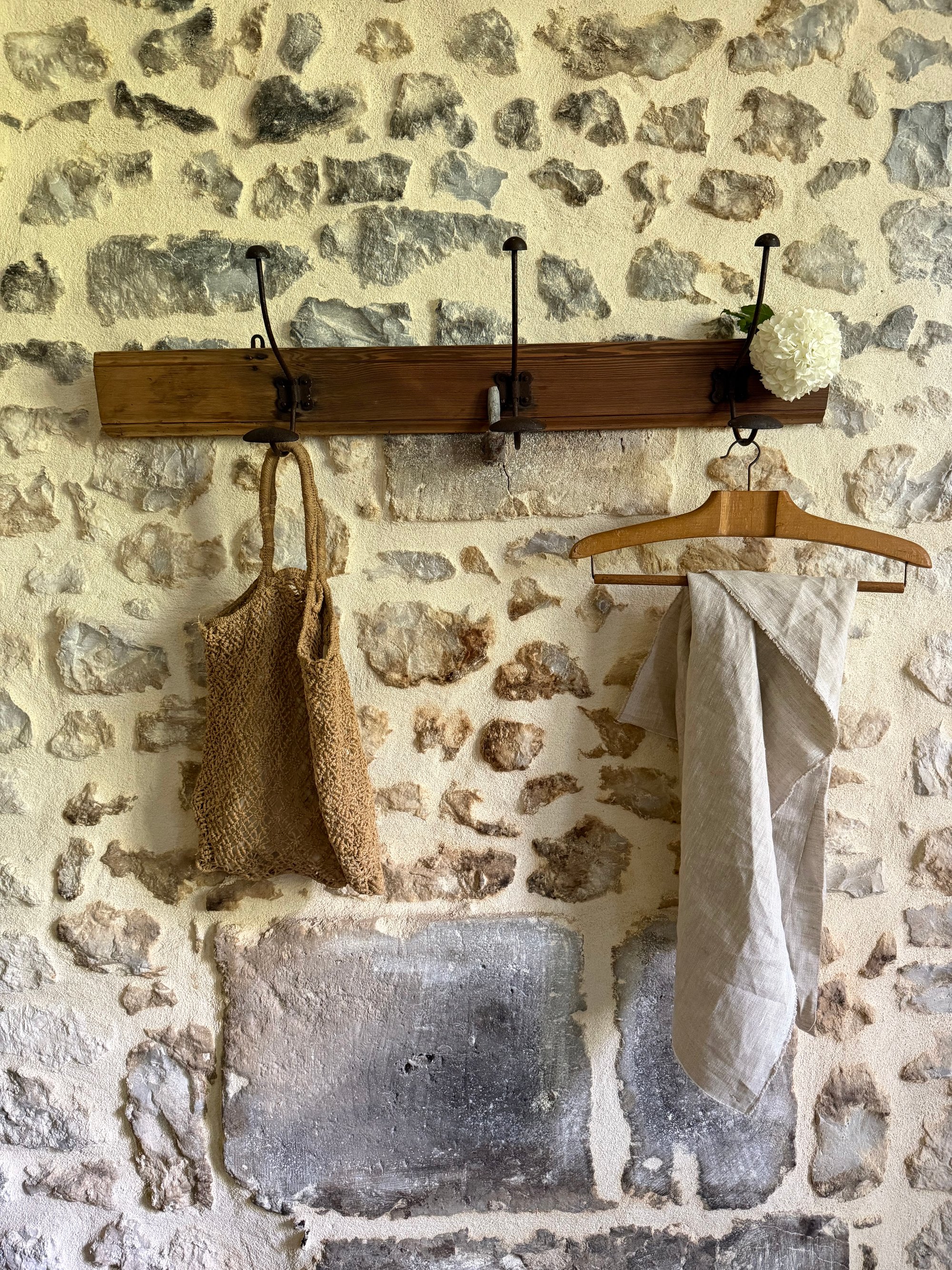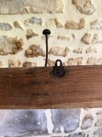 Il a été rénové: lessivé, son bois a été protégé au vernis mat incolore, et les patères passées à l'anti rouille afin de stabiliser leur jolie patine.