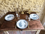 Joli service composé de 9 assiettes plates en terre de fer blanche et bleue, de la faïencerie française Saint Amand, société Amandinoise. Modèle Margot à décor de fleurs.