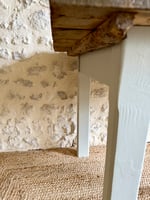Les pieds ont été repeints en blanc Edelweiss (Libéron), apportant lumière et contraste, et mettant en valeur la rusticité du plateau.