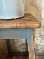 Pièce authentique de brocante qui a été rénovée avec soin: légèrement poncée afin de conserver sa peinture d'origine, traitée contre les parasites du bois et protégé au vernis mat incolore.